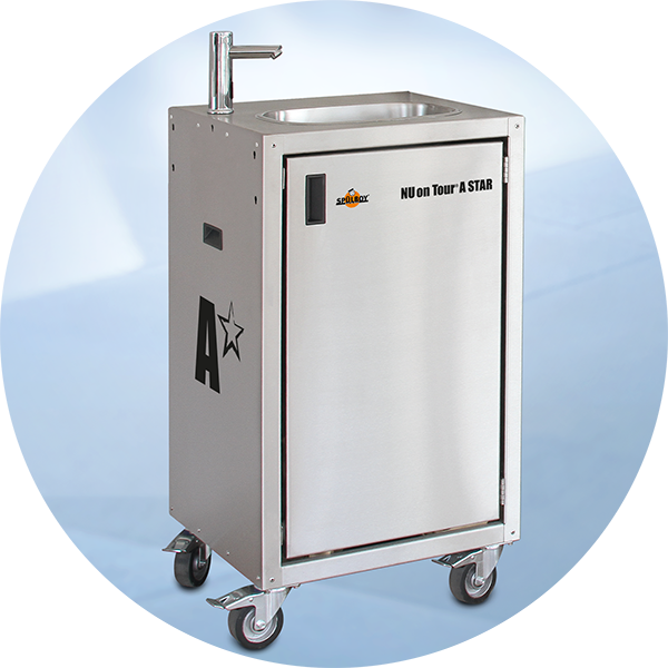 Mit integriertem Ablauf, optionalem Zubehör und NU on Tour® Thekenmodulen bilden sie die Grundlage für autarke Hygienestationen bei Veranstaltungen oder im Messebereich.